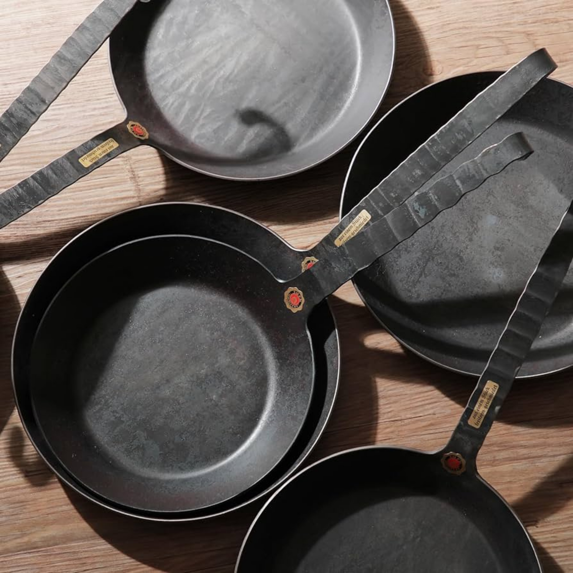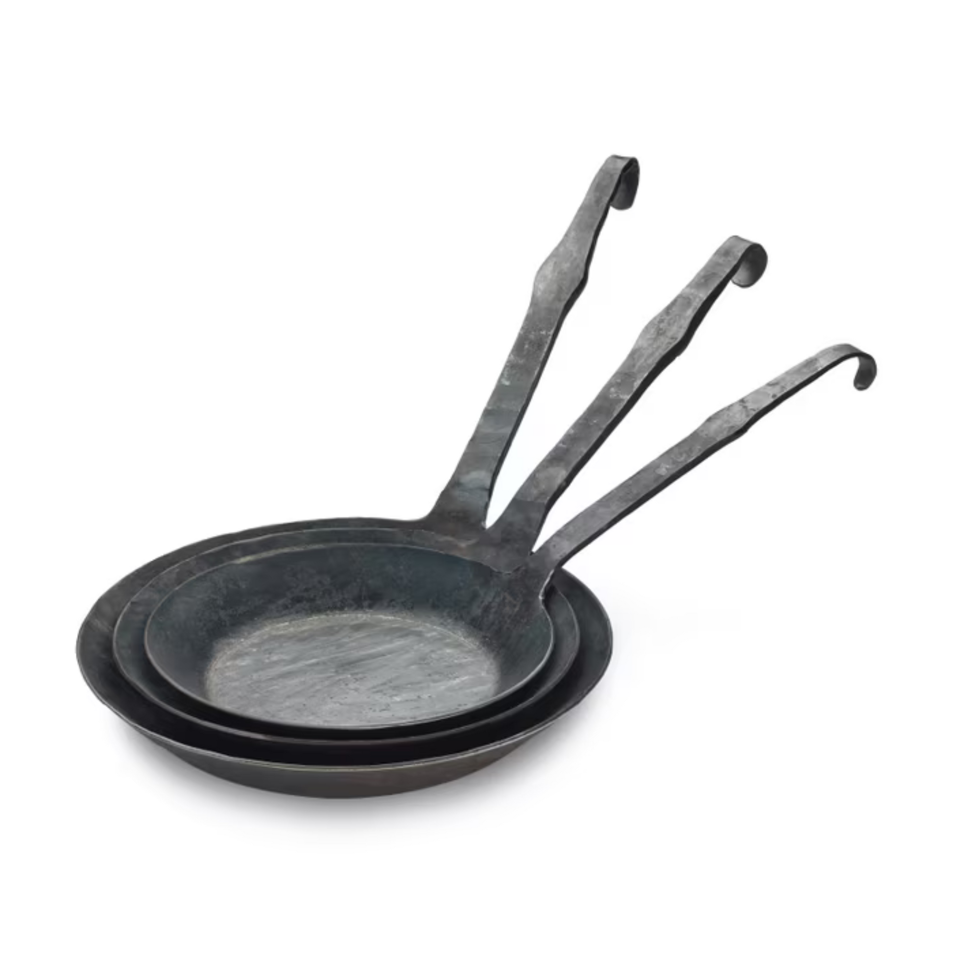 A traditional German frying pan made from a single piece of wrought iron. A hot die forged near indestructible pan.